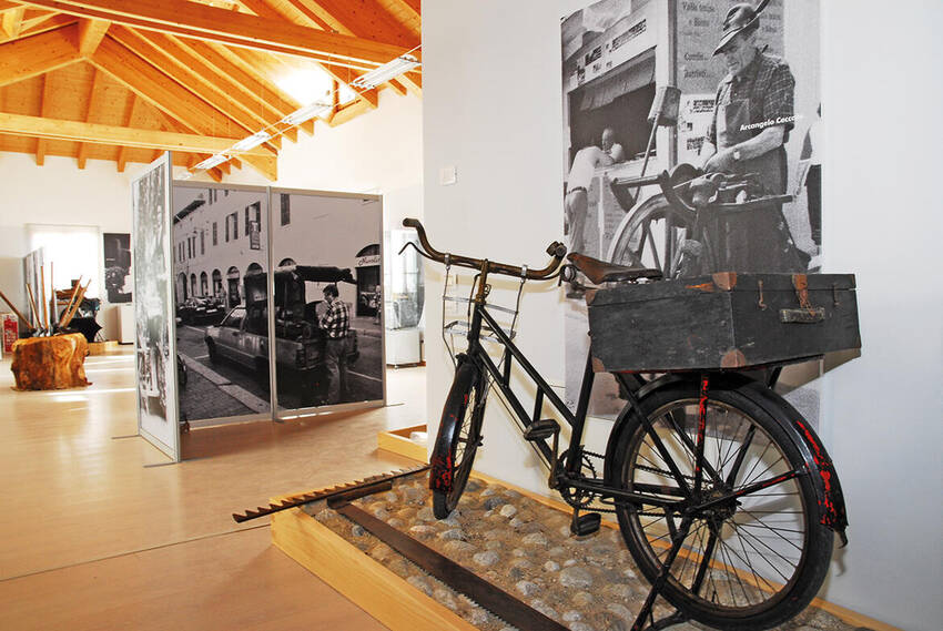 Nel corso del 1900, dal piccolo paese di Cinte partirono in molti alla ricerca di un futuro migliore: alcuni di loro scelsero la professione del moleta ambulante, girovagando per tutta Italia spingendo le mole a carrettino o pedalando su biciclette appositamente adattate. All’interno del museo sono esposte alcune mole in ottime condizioni, una ricca varietà di attrezzi dell’epoca e fotografie di grandi dimensioni che riportano il visitatore indietro nel tempo, per rivivere la fatica, l’entusiasmo e la durezza di quegli anni. Alcuni arrotini erano riusciti - con mole apposite – ad incidere il vetro, creando bottiglie, bicchieri e caraffe unici e personalizzati con decori, nomi e scritte.