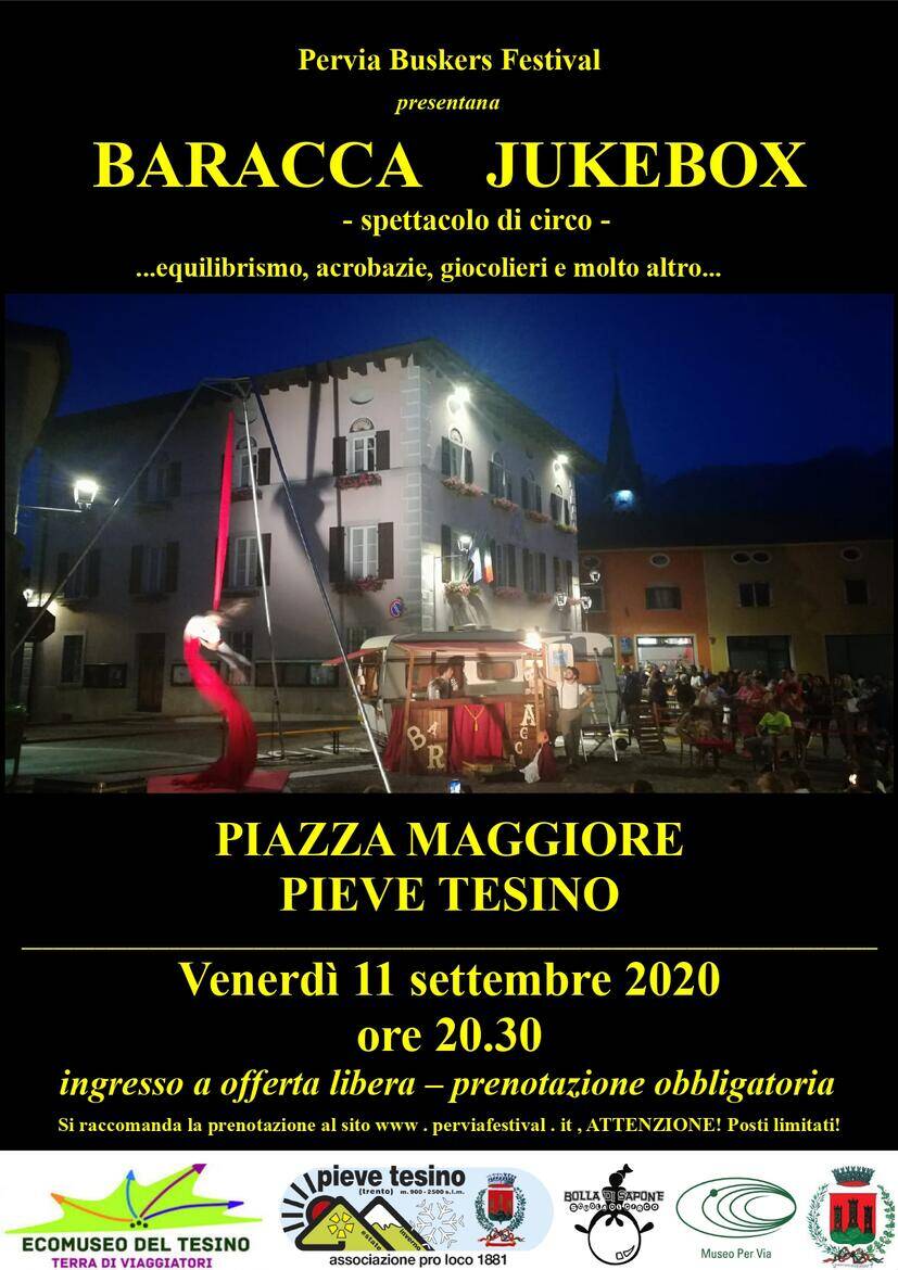 Spettacolo di circo con numeri di equilibrismo, acrobazie, giocolieri e molto altro. Un’iniziativa che alla stregua dell’ormai famosissimo Per Via Buskers Festival rende omaggio all’incredibile storia dei “perteganti” tesini facendo del paese un grande teatro a cielo aperto. Occasione per scoprire l’affascinante storia del Tesino attraverso la cultura e lo spirito dell’arte di strada. Un connubio che ci porta oltre i confini del tempo, fissando emozioni e ascoltando il messaggio d’amicizia che ogni artista di strada porta con sé nei suoi viaggi oltre i confini