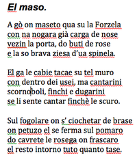 La sua è una poesia sempre scritta in dialetto e da cui traspare spesso un forte senso dell’ironia, ma sempre bonario, mai caustico e beffardo. Sono, i suoi, versi dignitosi e misurati, filtrati dal vaglio di un gusto nativo, senza la mediazione di una cultura troppo spesso schematica e scolastica!